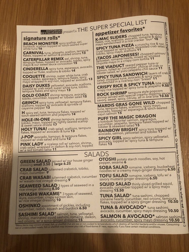 Kotobuki is a Japanese restaurant located in Hauppauge, NY, offering a wide range of appetizers, both from the kitchen and sushi bar. Known for their crispy rice and spicy tuna, KMac sliders, rock shrimp, and spicy tuna pizza, Kotobuki delivers on flavor and creativity. Customers rave about the fresh sushi and sashimi, as well as the beef and chicken negimaki. The restaurant atmosphere is described as cute and well-decorated, though some reviews mention that service can be slow during peak times. Overall, Kotobuki is a must-visit for sushi lovers looking for a diverse menu and a memorable dining experience.